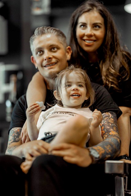 Chris Walsh, sa femme Taylor et leur fille. Propriétaire du Hemingway's, le bar et club social du centre-ville de Midland.